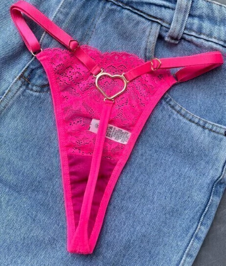 Calcinha renda fio dental com detalhe  de coração com regulagem  nas laterais